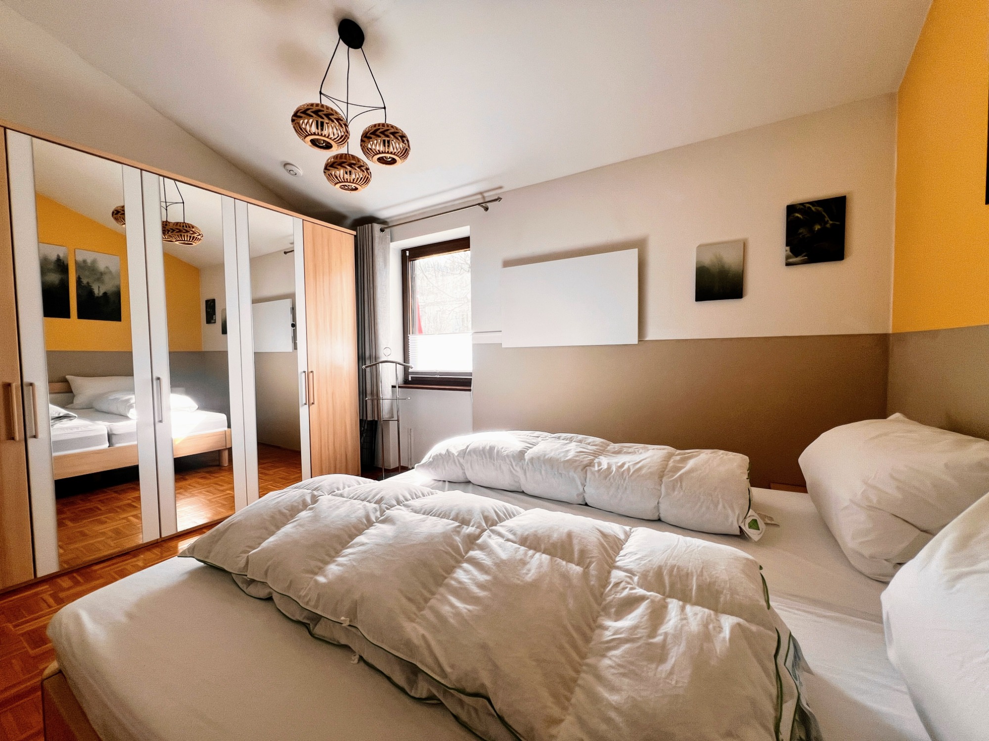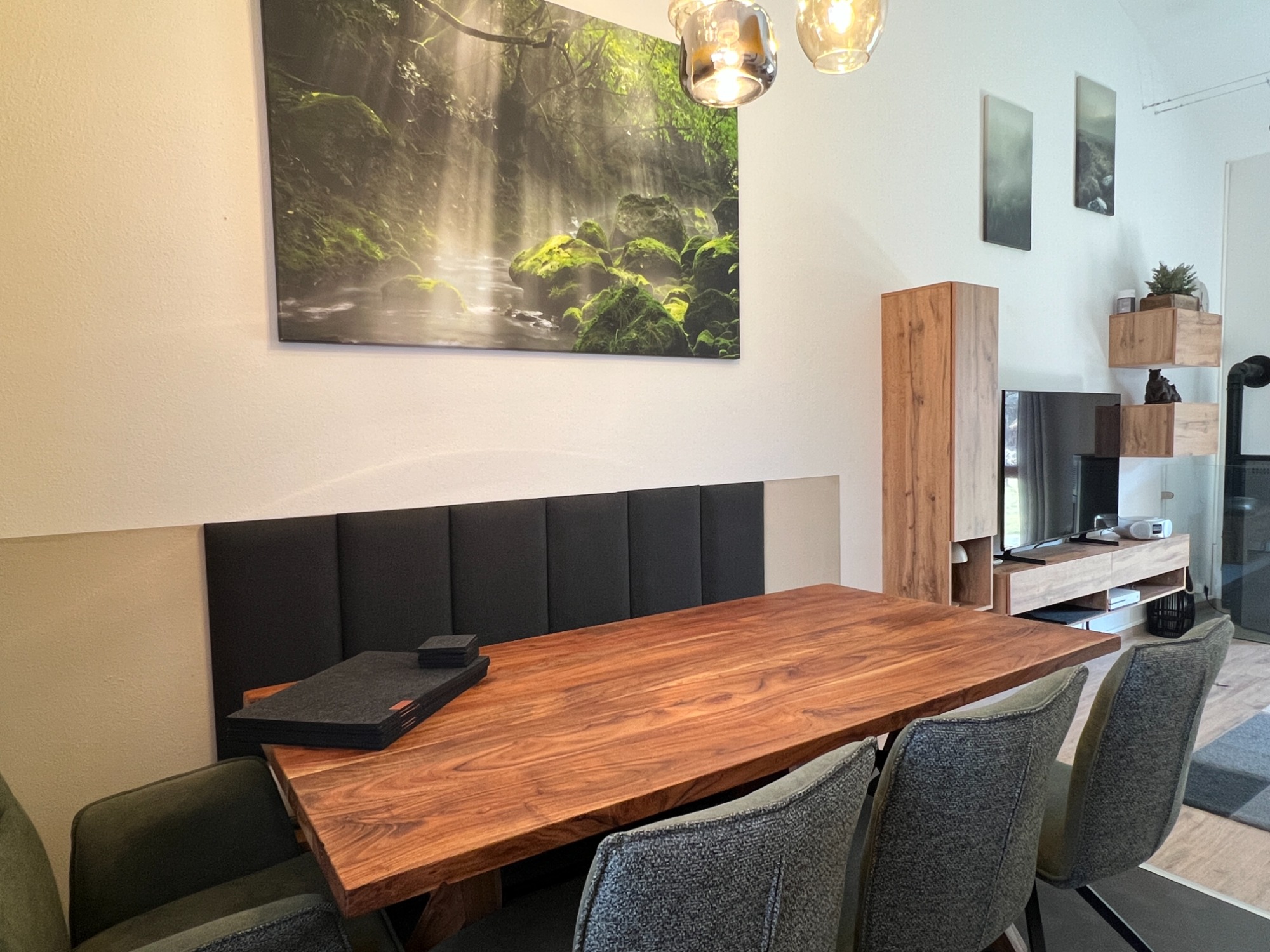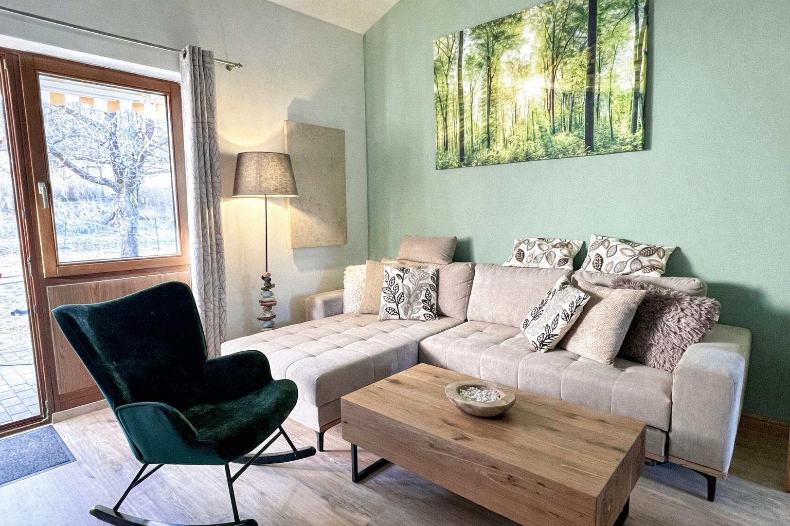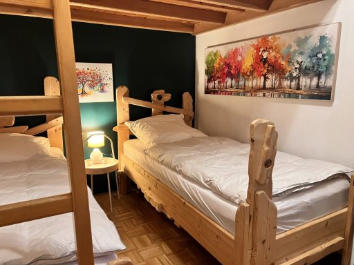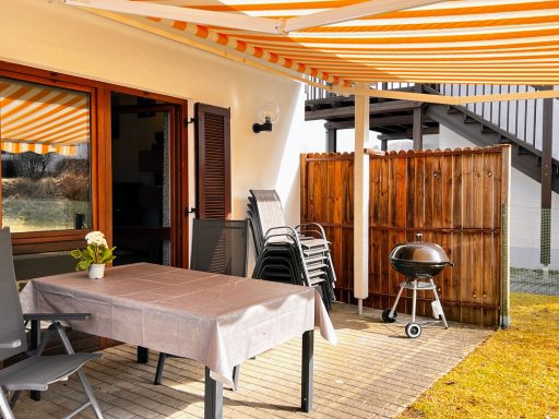 Unser Eichbär Haus mit der Hausnummer 45 ist ein Reihenendhaus und zentral im Park gelegen mit einem großen Wiesenanteil. Es ist 74 m2 groß und bietet mit seinen 2 Schlafzimmern Platz für bis zu 8 Personen (Schlafzimmer 1 mit Doppelbett, Schlafzimmer 2 mit 2 Einzelbetten und Schlafempore, Wohnzimmer mit Schlafcouch). Die Küche ist voll ausgestattet inkl. Geschirrspüler und Mikrowelle, im Wohnbereich sorgt ein Pelletofen an kalten Tagen für wohlige Wärme. Das Bad verfügt über zwei Waschbecken, Dusche und WC, außerdem ist ein separates Gäste-WC vorhanden. Damit das Auto nicht allzu voll gepackt werden muss, ist für die Kleinsten alles da wie Reisebett, Hochstuhl, Bettgitter, Tritthocker sowie Kindergeschirr und -besteck. Die sonnige Terrasse mit Markise und schönem Wiesenstück lädt zum Entspannen und Spielen ein. Ein Kugelgrill sowie Sonnenschirm gehören ebenfalls zum Inventar. Ein 55-Zoll-Smart-TV mit Streaming-Funktionen und eine X-Box mit Spieleauswahl sorgen für Abwechslung auch bei Regenwetter, an verschiedene Gesellschaftsspiele und Bücher haben wir ebenfalls gedacht. Im Kinderzimmer steht außerdem ein zweiter Smart-TV.