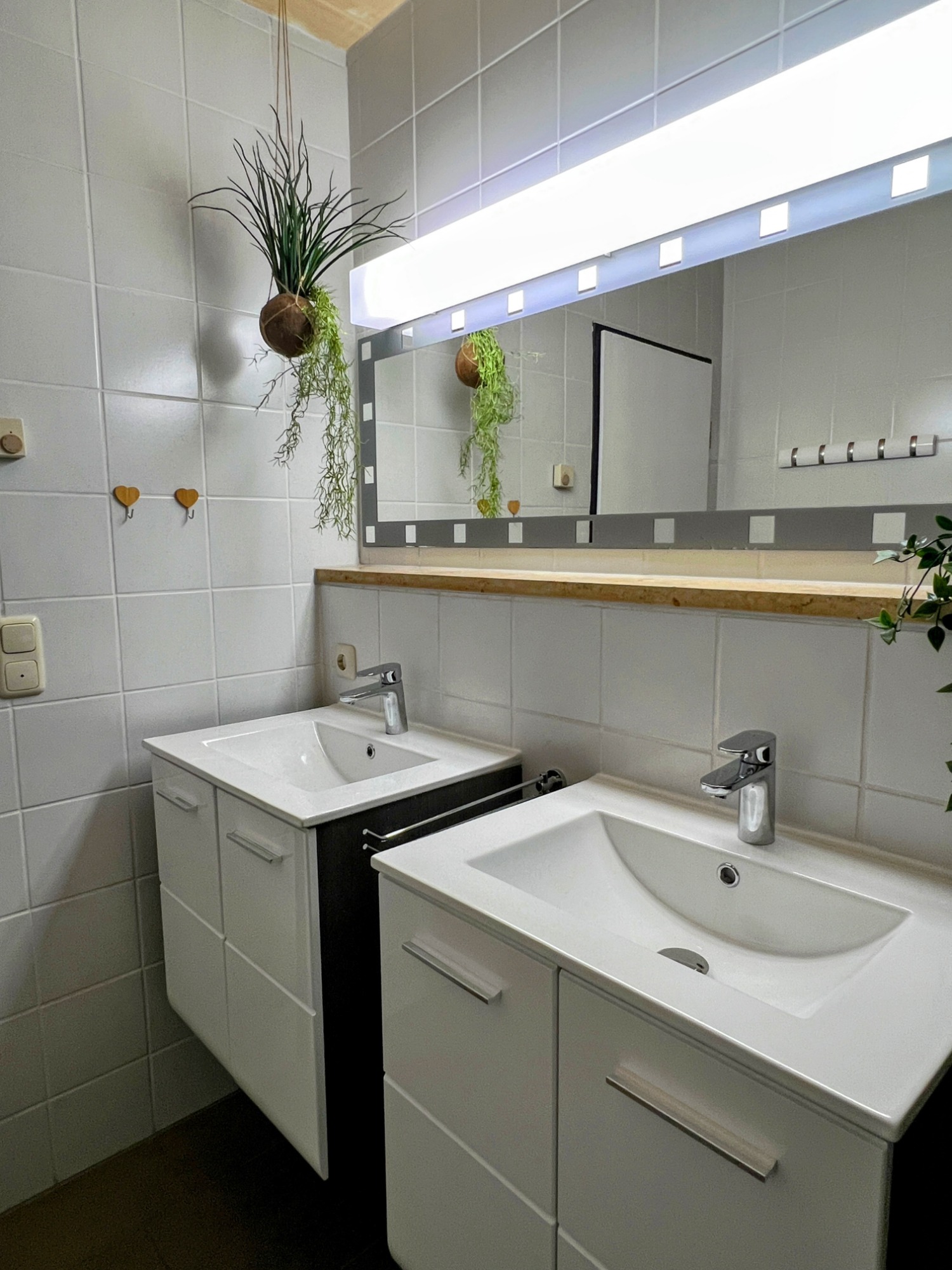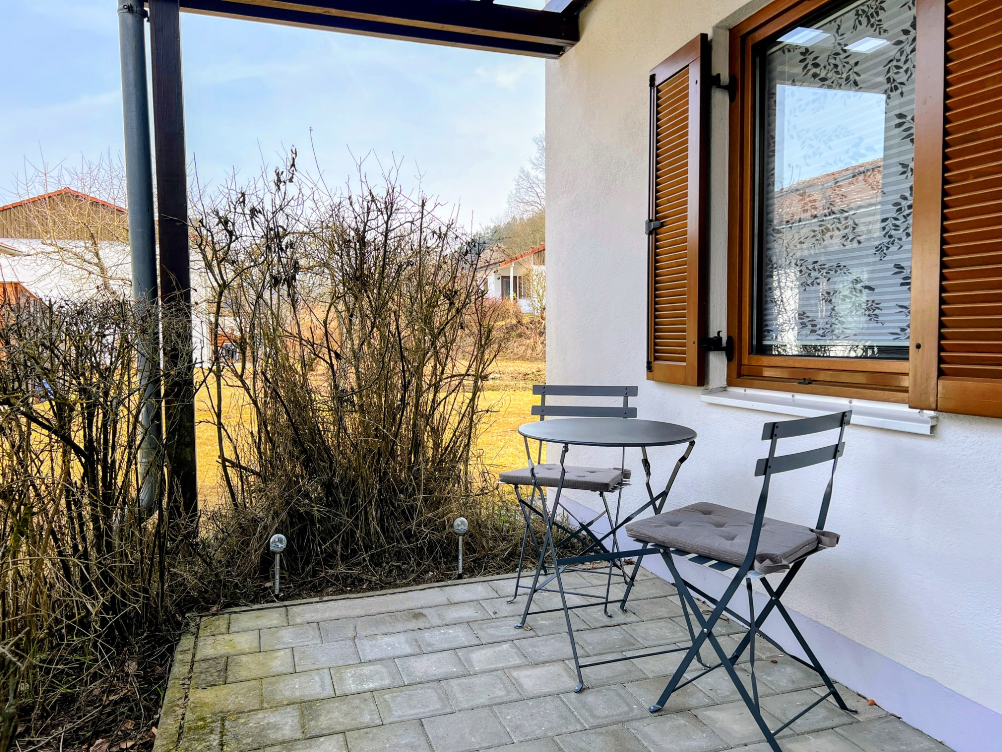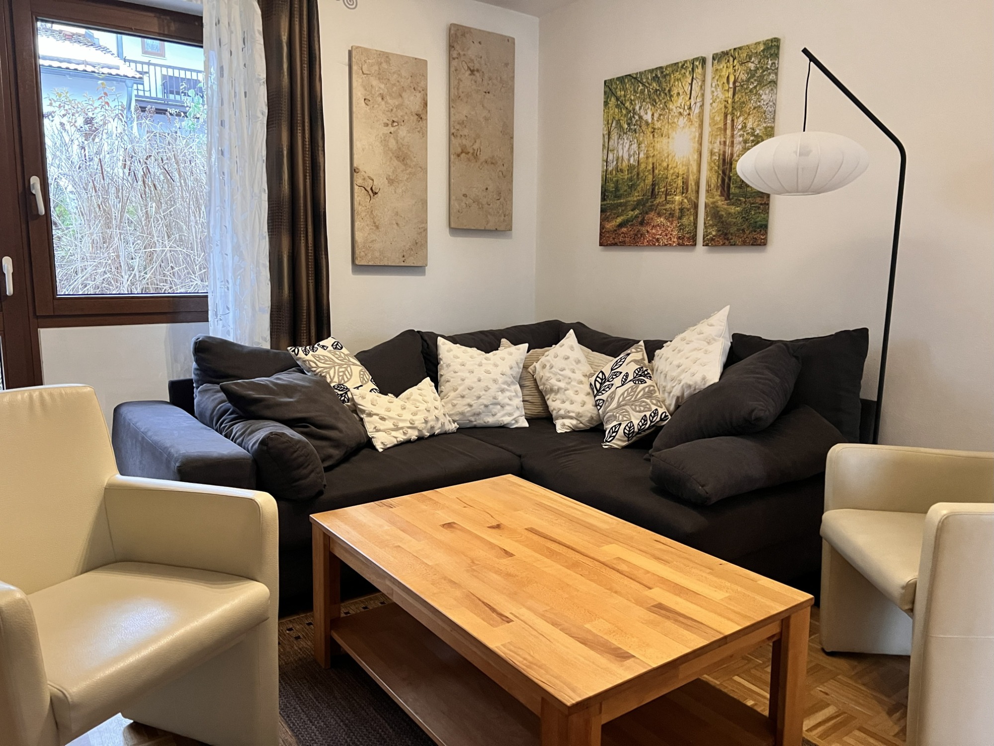 Unser Eichbär Quartier mit der Hausnummer 42EG ist eine Wohnung im Erdgeschoss und befindet sich ebenfalls am Ende einer Häuserreihe in der Nähe des Hauses. Daher sind beide Einheiten auch gut für befreundete Familien geeignet. Das Quartier ist 80 m2 groß und bietet mir seinen zwei Schlafzimmern Platz für 6 Personen (Schlafzimmer 1 mit Doppelbett, Schlafzimmer 2 mit zwei Einzelbetten, Schlafcouch im Wohnzimmer). Die Küche ist voll ausgestattet mit Geschirrspüler, Mikrowelle und großer Kühl-/Gefrierkombi. Im Sommer sitzt man gemütlich auf der großen Terrasse, im Winter spendet der Pelletofen wohlige Wärme. Damit das Auto nicht allzu voll gepackt werden muss, ist für die Kleinsten alles da wie Reisebett, Hochstuhl, Bettgitter, Tritthocker sowie Kindergeschirr und -besteck. Die sonnige Terrasse lädt zum Entspannen und Spielen ein, ein großer Sonnenschirm ist ebenso vorhanden wie ein großer Kugelgrill. Ein 55-Zoll-Smart-TV mit Streaming-Funktionen und eine PlayStation 4 mit zwei Controllern und einer Spieleauswahl sorgen für Abwechslung auch bei Regenwetter, an verschiedene Gesellschaftsspiele und Bücher haben wir ebenfalls gedacht. Im Kinderzimmer steht außerdem ein zweiter Smart-TV mit weiterer Spielekonsole..